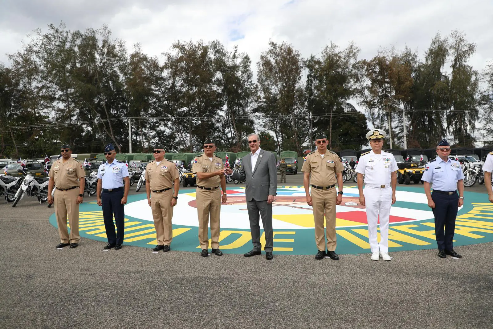 Durante el acto, fueron entregadas 51 camionetas nuevas doble cabina, 4 furgonetas, 25 camiones, 94 motores, 2 Four Wheels, 3 minibús, 2 autobuses y 2 camiones furgón, para facilitar la movilidad de los soldados y el patrullaje en zonas de difícil acceso; así como un dron de carga para el Cuerpo Especializado de Mitigación de Desastres.